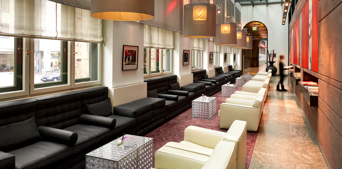 Apparently there are three other themed suites among the total 396 key-count. What would the good citizens of the Bavarian capital have thought back in 1893, when their central post office opened right next to the main train station? The sorting office, which operated for a full century, has been converted into a soaring open atrium, a testament to how much dark burgundy marble can be put into one space. I take a walk around the immediate locale, stopping en route to the main rotating front door to enjoy a pop-up exhibition of metre-high black and white photographs, Pretty Woman-style. Style from years past leads to new-look style, just right for today.