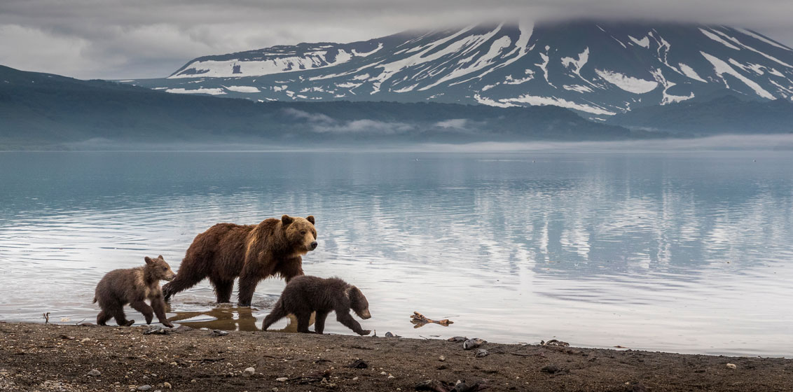 Lead image | Kamchatka brown bear and cubs on the shore of Kuril Lake, Kamchatka, Russia | © Richard l’Anson