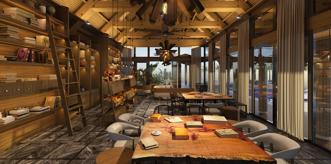 Influenced by the region’s traditional architecture, the design language mimics a Caribbean village bursting with variety along the lakefront promenade and beach. The walkways through the gardens are made of repurposed nutmeg shells and cocoa skins, maintaining the connection to Grenada’s ‘Spice Island’ heritage.