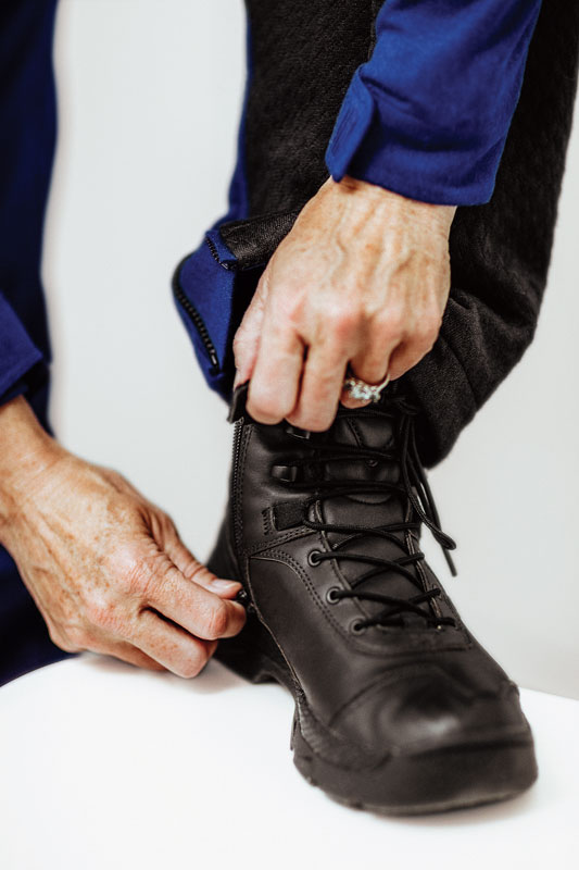 The non-pressurised suit is lightweight at just over one kilogram and consists of flight-grade fabrics to ensure it is robust and strong. The spacesuit is optimised for comfort in all stages of flight, whether that be during boost when acceleration forces press the pilots backwards into their seats, or in zero gravity where cushioning on the shoulders provides comfort as pilots are held in positions by seat straps. Fabrics which form the spacesuit also help to regulate body temperature, whether outside in the New Mexico sunshine or during the various phases of flight.