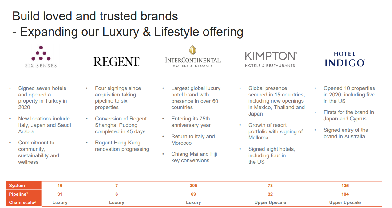 “Since 2015, we have added Kimpton Hotels & Restaurants, Regent Hotels & Resorts and Six Senses Hotels Resorts Spas to our Luxury & Lifestyle offer, alongside accelerating the international expansion of our InterContinental Hotels & Resorts and Hotel Indigo brands.”