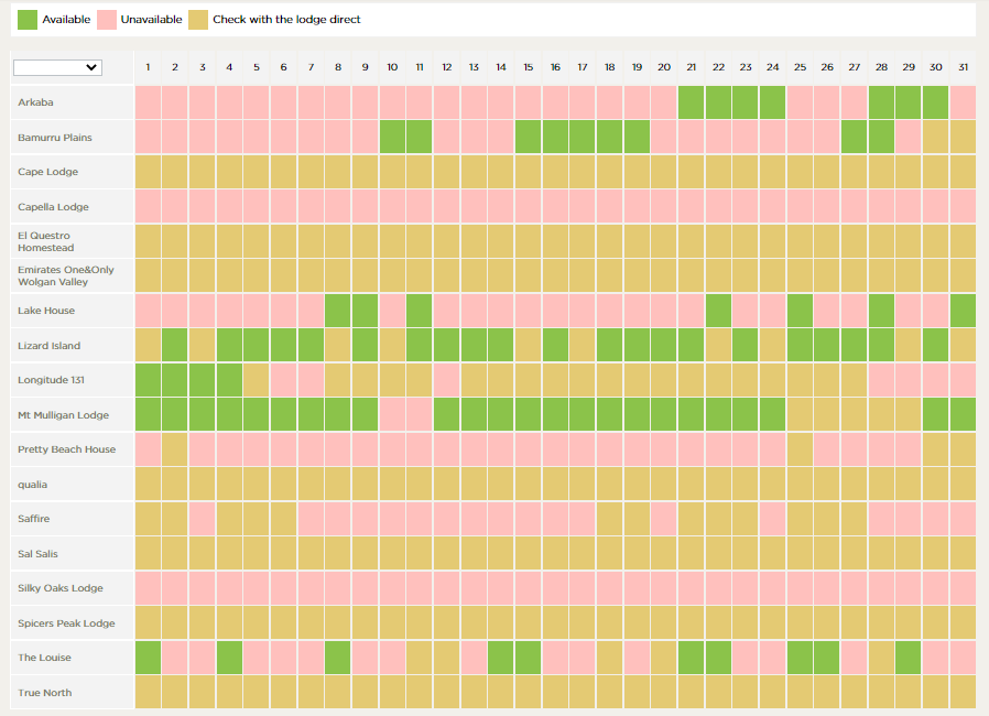 Access Luxury Lodges of Australia’s live Availability Calender here.