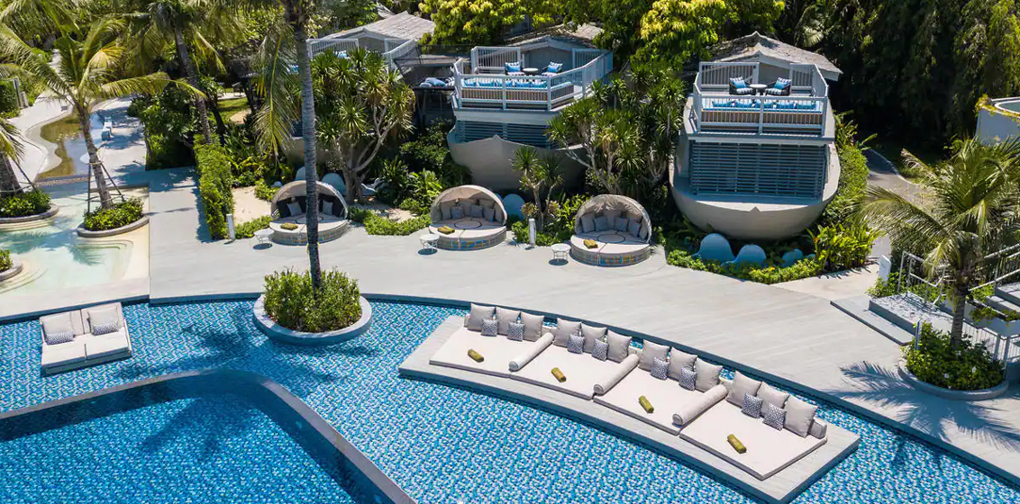 Situated on its own exclusive floor for privacy, The Presidential Suite features a vast living area, 10-seat dining table and private balcony overlooking the lagoon pool, and also belongs to ‘The Level’.