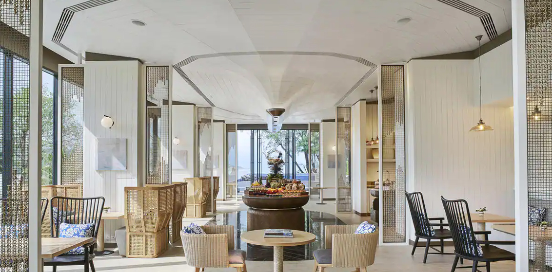 The Level offers an upgraded level of service and benefits, including access to an executive lounge shaped like a boat’s hull with all-day snacks and beverages. The Level Lounge boasts a vast open terrace surrounded by a water feature, with panoramic views of Choeng Mon Beach.