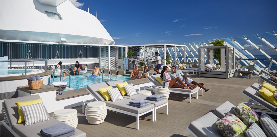 Onboard are transformational accommodations, from modern two-story villas with plunge pools to staterooms with infinite verandas, The Magic Carpet soaring cantilevered above the sea and offering guests uninterrupted vistas while sipping cocktails or having dinner.