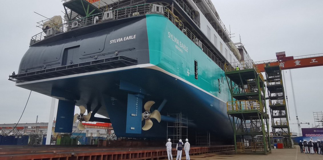 Aurora Expeditions‘ second Ulstein-bow equipped ship, Sylvia Earle, has been launched at the CMHI shipyard in Haimen, China.