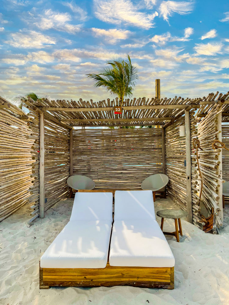 Featuring beach chairs, a day bed, drink coolers and other perks. Just a stone’s throw away from the turquoise Bahamian sea, the cabanas include a US$100 drink package to get things started.