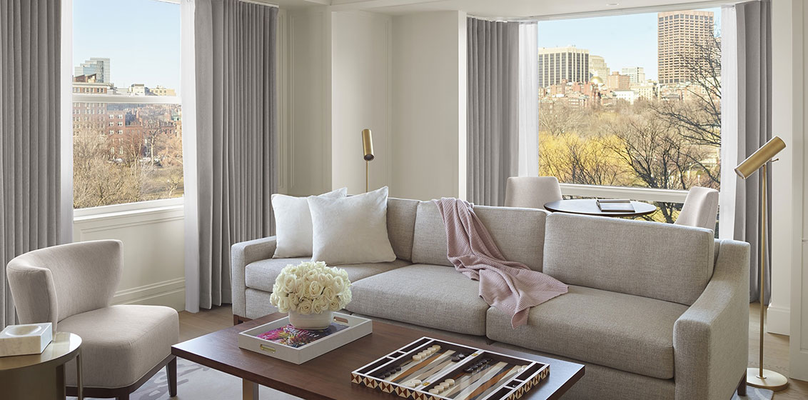 Heritage architecture and residential comfort envelop each guestroom and suite at The Newbury Boston. Designed by acclaimed interior design firm Champalimaud Design, each room and suite incorporate a calming colour palette and tactile materials that are contemporary, yet reflective of the tailored Bostonian aesthetic. Layering upon stunning stylistic elements of handcrafted wood, herringbone accents, and marble touches that further add a sense of lavish materiality and craftsmanship, rooms are appointed with hand-selected, richly textured furnishings and original artwork, along with luxury amenities exclusively curated for guests.