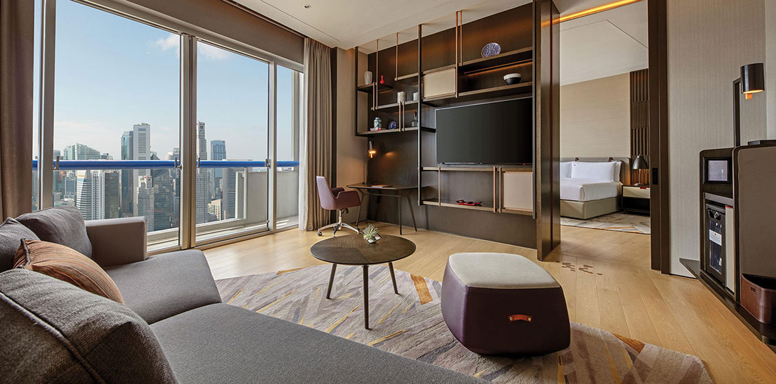 Up at suite 6465, my mouth was open in amazement. This is a new concept, designed by Wilson, that allows spaces to be adapted for small meetings. My scarlet Smeg refrigerator, and matching Nespresso, for instance, would be equally at home were I hosting a gather of, say, 12 colleagues rather than leisurely enjoying an overnight leisure stay. I loved looking down at Singapore’s cricket pitch, far below.
