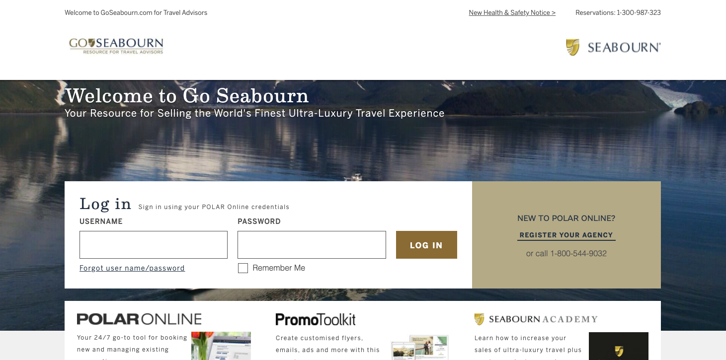 Advisors can access Go Seabourn using their existing POLAR username and passwords, linking directly to POLAR online from which they can make new bookings or manage existing Seabourn reservations.
