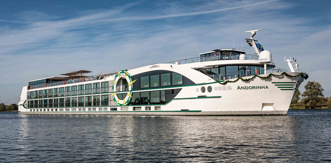 Designed specifically to sail on Portugal’s Douro River (and originally scheduled to be christened in March 2020), Andorinha is named for a species of small migratory swallow that returns to the same nests in Portugal each spring after wintering in Africa.