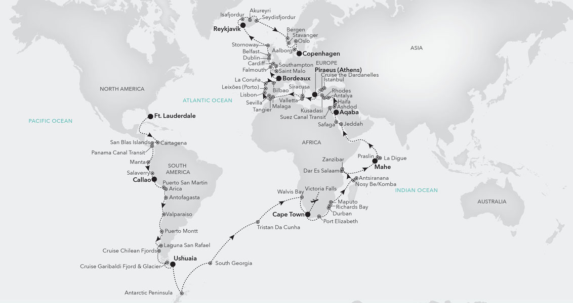 Comprising immersive travel experiences, with guests journeying from the 65th parallel south to the 65th parallel north, touching both Antarctica and Iceland, the 137-day Tale of Tales 2022 departs Fort Lauderdale on 6 January to unlock a range of cultures, climates, experiences, and landscapes in 69 destinations across 32 countries and six continents.