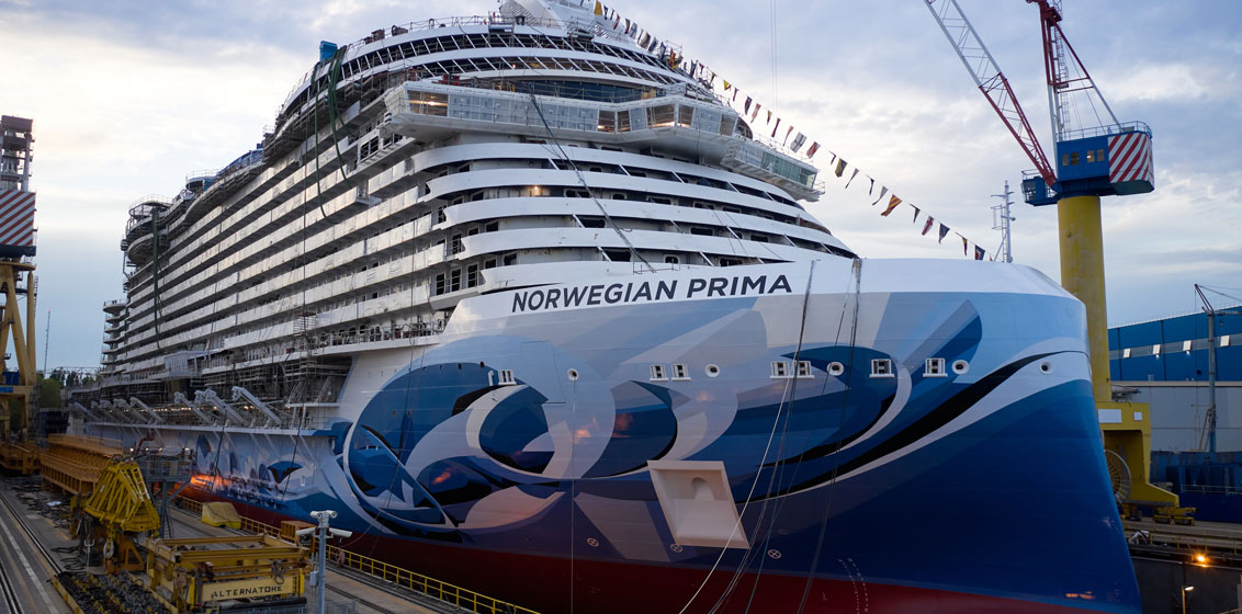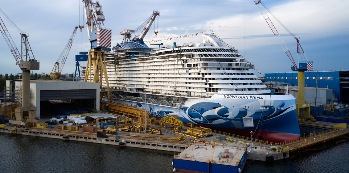 The float out signifies the completion of external works and painting to Norwegian Prima, including the hull artwork designed by Italian graffiti artist Manuel Di Rita. Work now continues on Norwegian Prima‘s interior fittings and guest accommodations, before she is officially delivered to NCL and commences sailing in summer 2022.