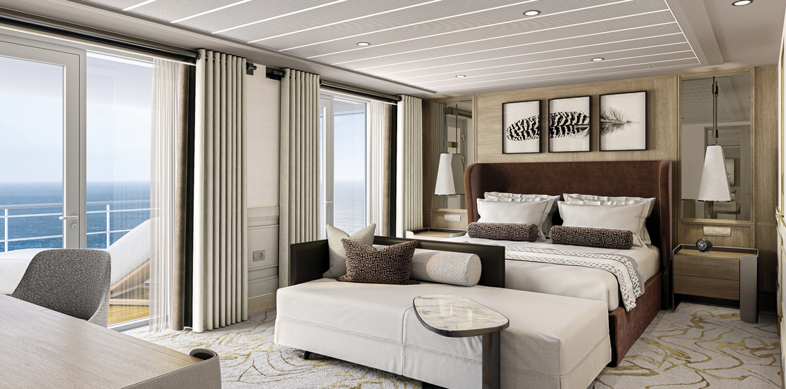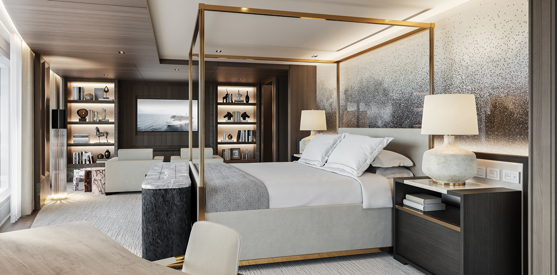 A sister-ship to Seven Seas Explorer, and the newest fleet addition, Seven Seas Splendor, RSSC last week revealed its first look at some of the stunning range of suite categories that will be offered aboard Grandeur, including the next iteration of the top-of-the-line Regent Suite.