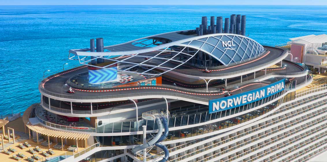 As the only Cruise Line to offer go-karts at sea, NCL is upping the ante on Norwegian Prima, offering the largest and first-ever three-level racetrack with the Prima Speedway.