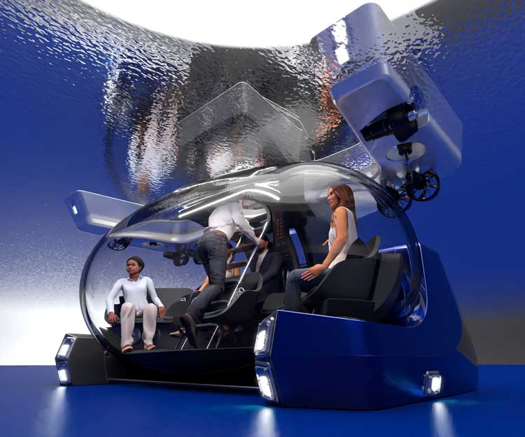 “With a footprint comparable to that of previous generation dual-hulled submersibles, it offers an interior volume almost three times greater. This expansive, flexible space allows you to curate experiences hitherto unimaginable in a submersible; from cocktails and casinos to weddings and private dining,” the website states.