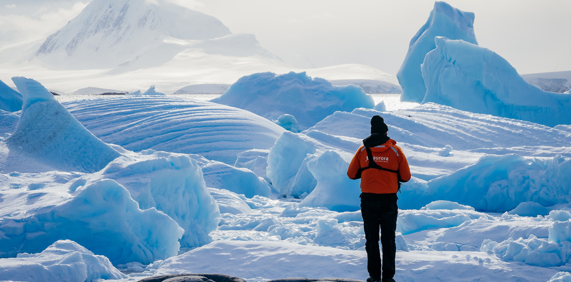 Lead image: Aurora Expeditions’ team member at Pleneau and Port Charcot, Antarctica © Matt Horspool