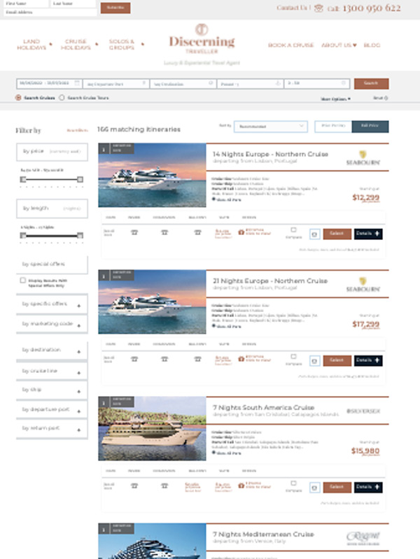 Discerning Traveller is now offering clients the ability to book cruise packages online with live integration to cruise line partners.
