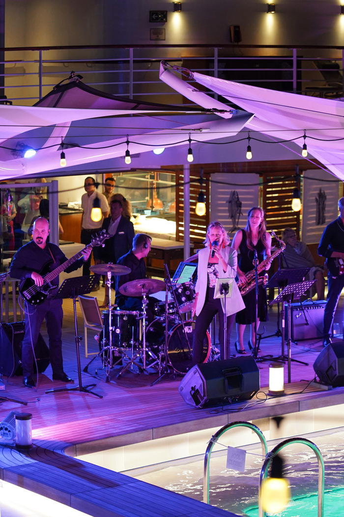 One example is Seabourn’s entertainers singing opera outdoors on the deck above the pool when the ship sails away from port.Mosslinger explains: “Departing Rhodes, a beautiful Greek port where you are in the old town and overlooking the ruins of old Greece is memorable in itself. But pulling out of that historical area with our team aboard singing opera, as the sun sets, is next level. Everybody gave them a standing ovation, and that’s not because people were standing already. All those around the pool sitting stood up to applaud. It was insane and just thinking back it gives you goosebumps.