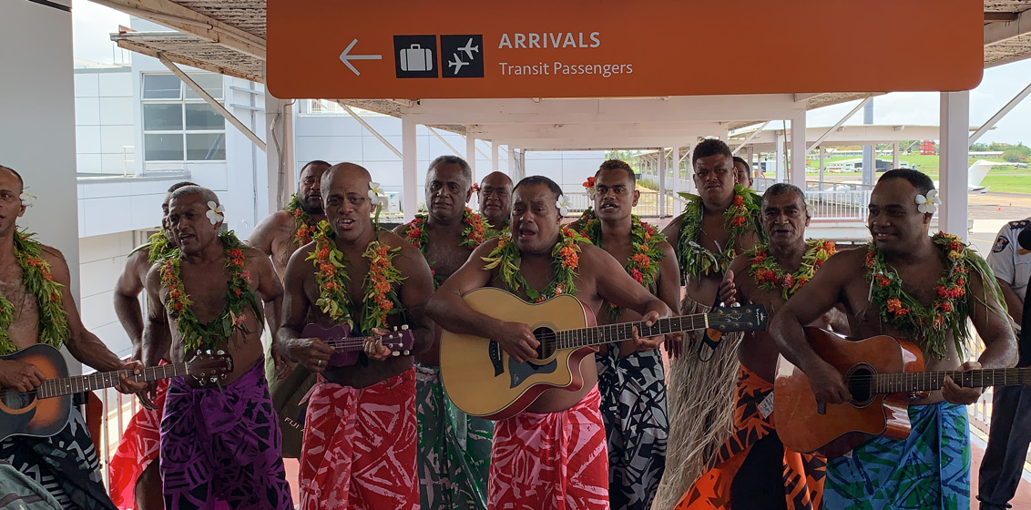 Passengers and guests, including LATTE, aboard FJ914 from Sydney to Nadi were greeted with typical Fijian flamboyance on arrival, with melodic choirs and Fijian warriors flanking the aerobridges upon entering the terminal. And of course, with the passionate and exuberant holler of “BULA!” it was impossible not to smile and feel their happiness at seeing foreign travellers again.