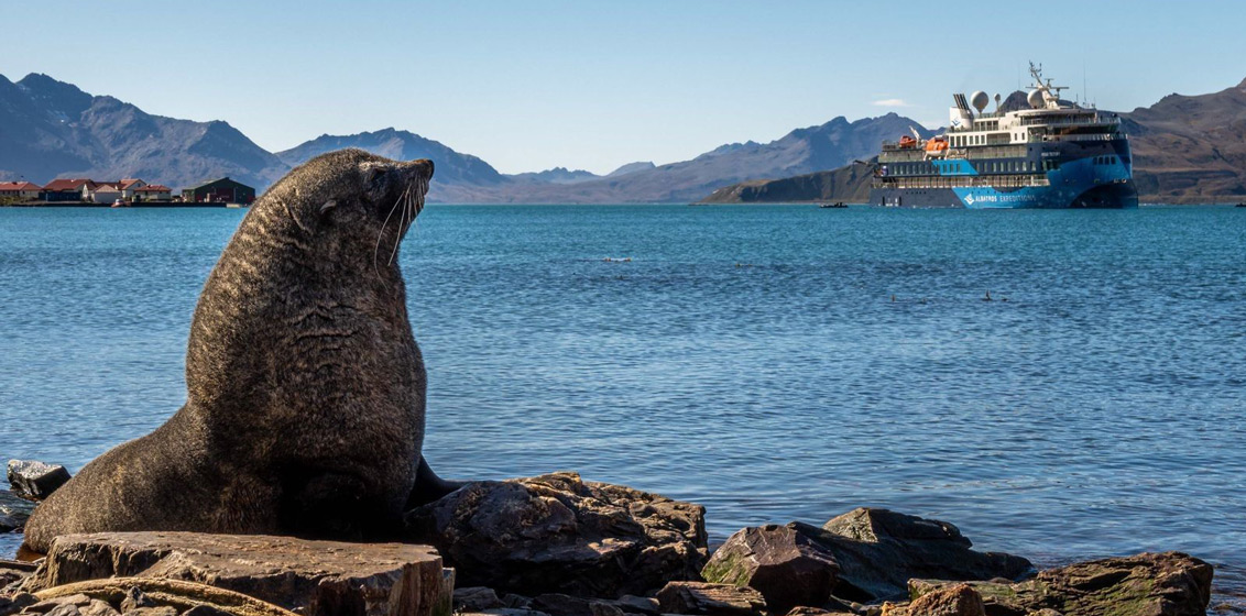 “We are still checking all records, but we are pretty sure we are the first cruise vessel ever to be christened in South Georgia, possibly even the first vessel ever!” the cruise operator said.