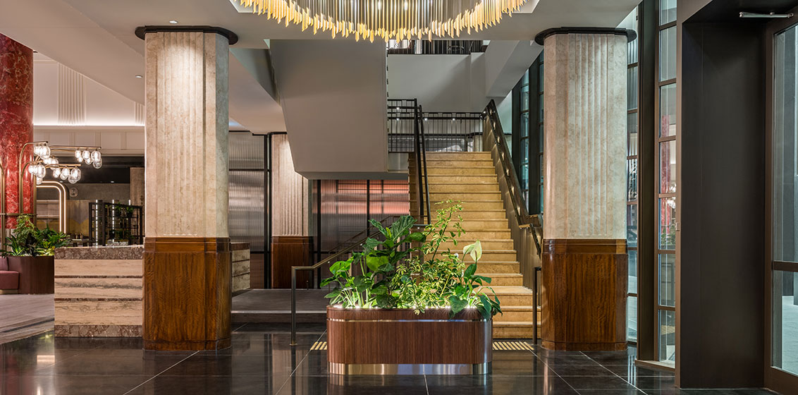 From the grand, Scagliola pillared lobby evoking the spirit of the 1930s to bold patterns, plush furnishings and botanical displays which create a harmonious eclectic inner-city hideaway, Kimpton Margot Sydney shows off at every corner.
