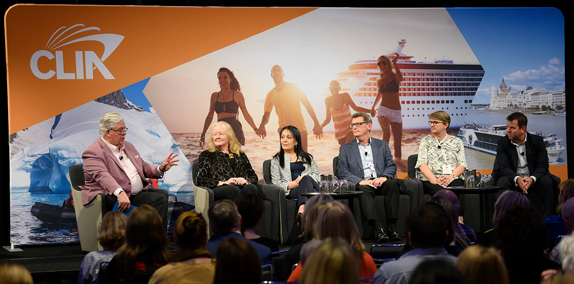 Lead image: Cruise360 2019 cruise panel moderated by Phil Hoffmann, of Phil Hoffmann Travel.