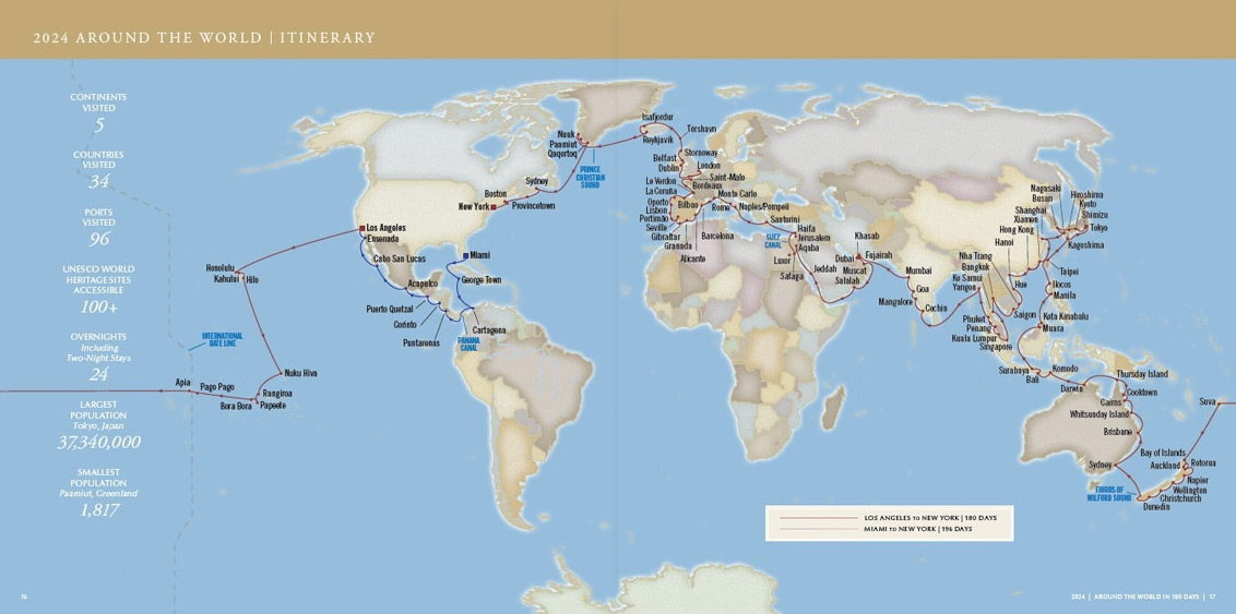 “Incredibly, last year our 2023 world cruise sold out in just one day, so for 2024 we are providing guests more extended voyage options to deeply and meaningfully rediscover the world,” said Howard Sherman, President and CEO of Oceania Cruises.