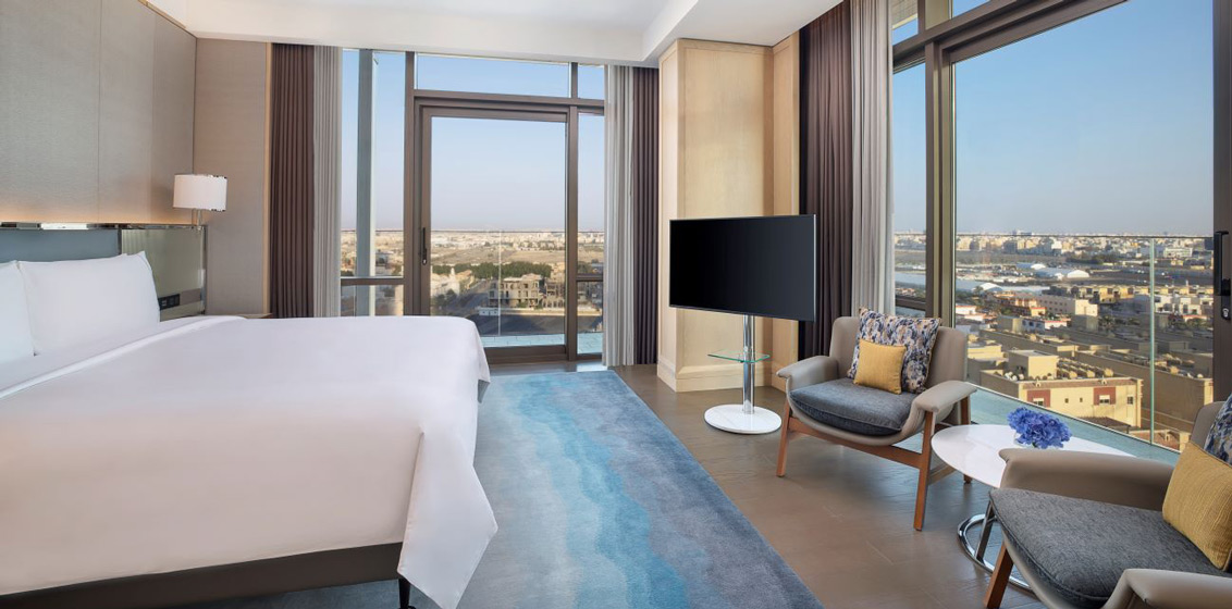Positioned on the Corniche, the property features 220 guest rooms and suites and 17 serviced apartments, that feature floor-to-ceiling windows that offer sweeping views over the Red Sea and the Jeddah skyline.