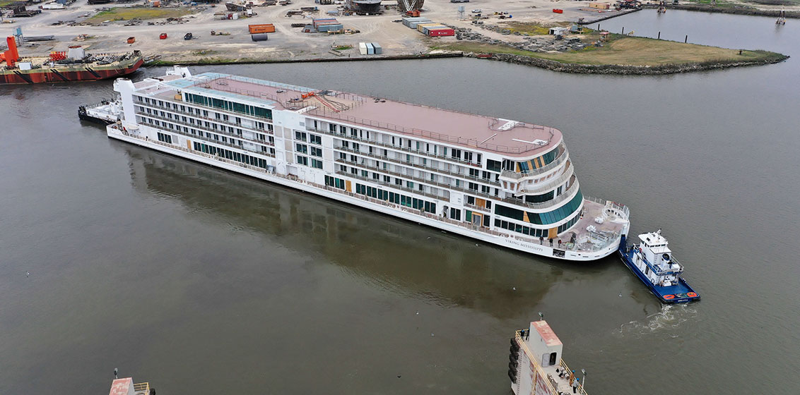 Viking’s first riverboat dedicated to the US market, Viking Mississippi, has been “floated out” in Louisiana, marking a major construction milestone and the first time the ship has touched water.