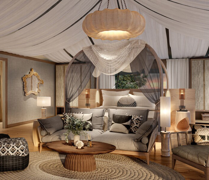 Plans for the new-build lodge comprise 20 private tents, including one presidential canvas-topped pavilion and two interconnecting canopied suites, each with a private terrace overlooking the river.