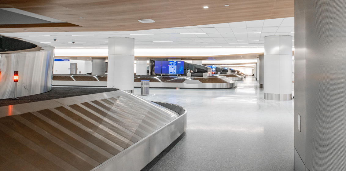 The check-in and baggage drop area features a 76-metre digital backwall that spans the entire length of the facility, featuring wayfinding in both English and Spanish as well as Sky Club volume and gate information.