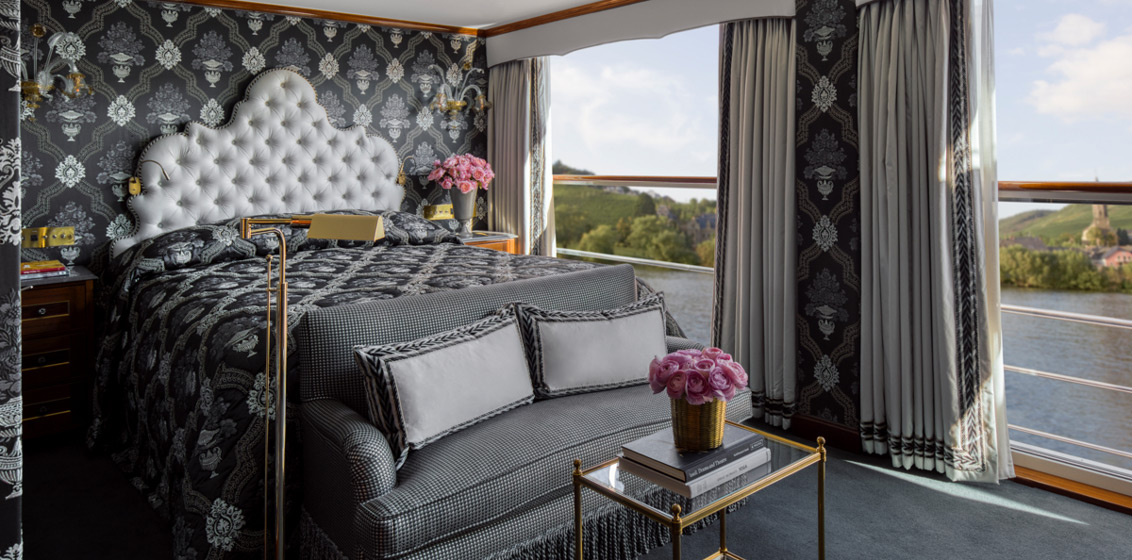 Among the enhancements are revamped suites aboard Super Ship (S.S.) Antoinette in Europe, as viewed in the galleries below of Grand Suite 400 and adjacent Suites 402 and 403, where two have been given a subtle cream coloured reinvention and the other (403) a distinctively bold, black and charcoal theme.Suites aboard River Tosca in Egypt have also been given a facelift.