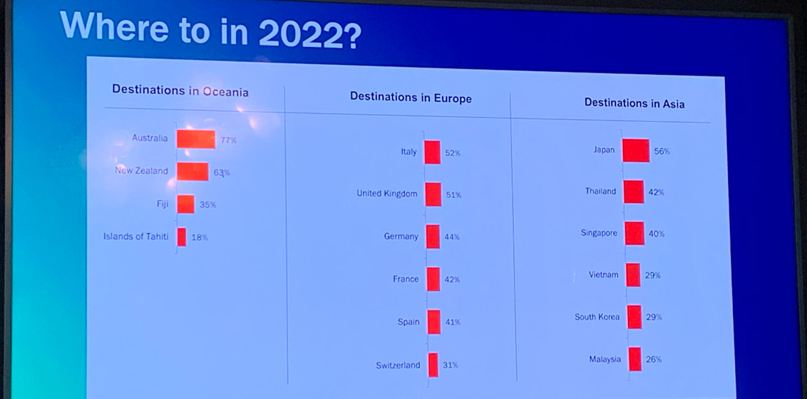 Dalton also cited a Virtuoso Yougov 2022 survey of Aussie and Kiwi consumers that found most wanted to visit Australia and New Zealand in the Oceania region, followed by Fiji and French Polynesia. Destinations in Europe that were most favoured include Italy, UK, Germany and France; while in Asia, Japan was the frontrunner, then Thailand, Singapore and Vietnam.