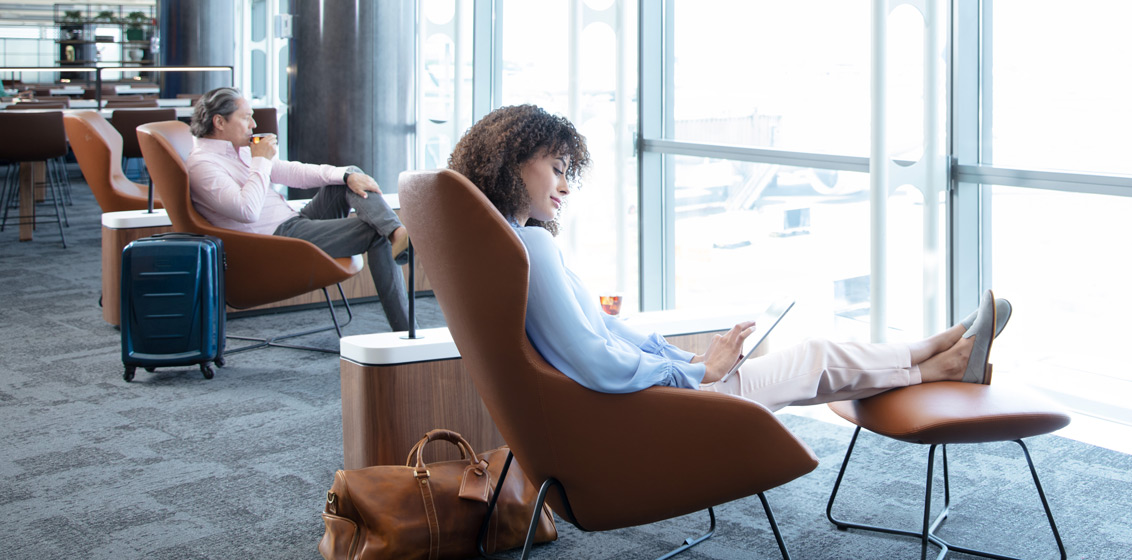 • Sustainable, green materials: As part of the airline’s sustainability commitment, the Club is designed with sustainable materials and features, such as WaterSense-rated fixtures, enhanced indoor air quality, green cleaning and more.
