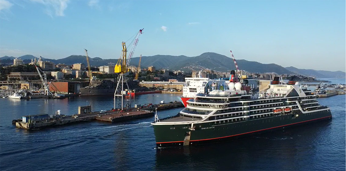 Seabourn Venture is being fitted out at the T. Mariotti shipyard in Genoa, Italy. Last week, LATTE Cruise shared details of Seabourn Venture‘s sea trials in the Mediterranean Sea.