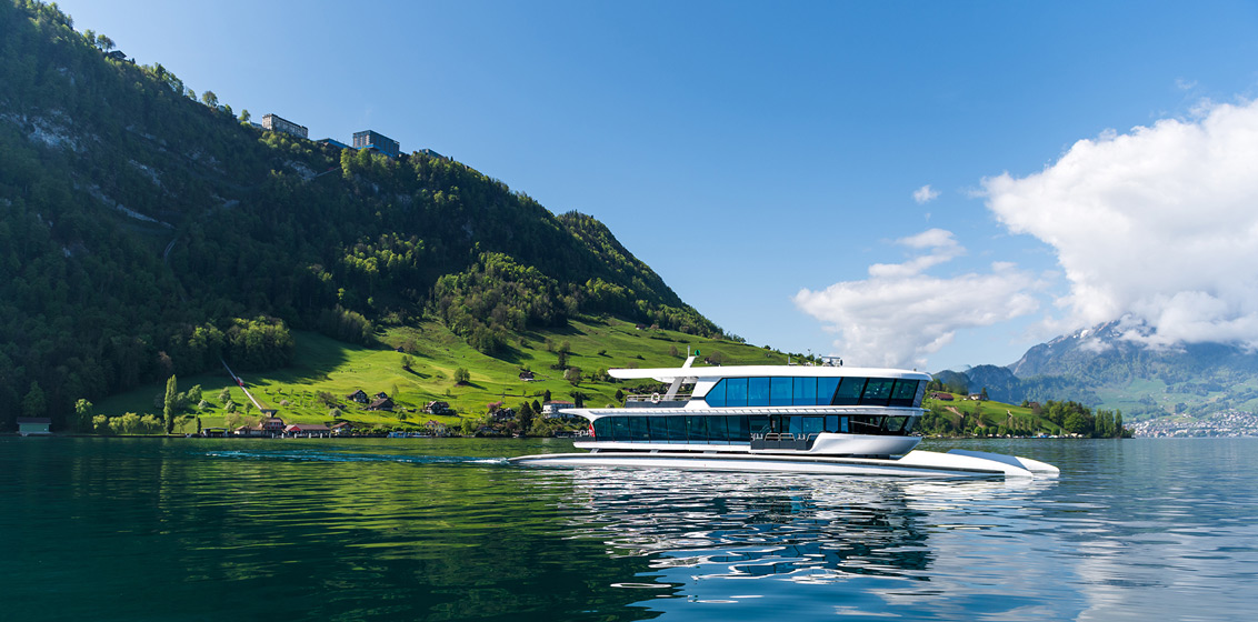 Throughout a Bürgenstock stay, combine glorious fresh air with exercise. It’s an hour’s return climb up to the top of Europe’s tallest outdoor lift. Less strenuous is to take the pulley funicular, 1888 but just upgraded, from within the hotel, four minutes down to the lake. Perfectly timed, Swiss-efficient, the cross-lake double-deck shuttle boat pulls up.