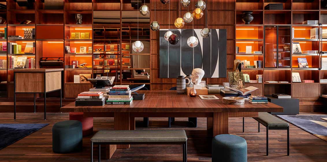 BOOKS. Where else can you dine with David Hockney, Annie Leibowitz and their ilk? Actually David Hockney and Annie Leibowitz are two of the limited-edition TASCHEN Bigger Books that would break a foot if they fell off the Marc Newsom stands included in the US$5,500 cover price. The central display table in the centre of one of Europe’s all-time great bookstores, the ultra-modern Mendo, becomes private dining, for up to ten. Mendo, which has a street entrance, is permanently based here, in Hotel De l’Europe. Any time, browse, lounge, network with like-minded culture-seekers, and even buy. The often-there owner, a heart-throb Rwandan investment banker, is of the dispense-bubbly to encourage sales school of thought, which certainly encourages purchase.