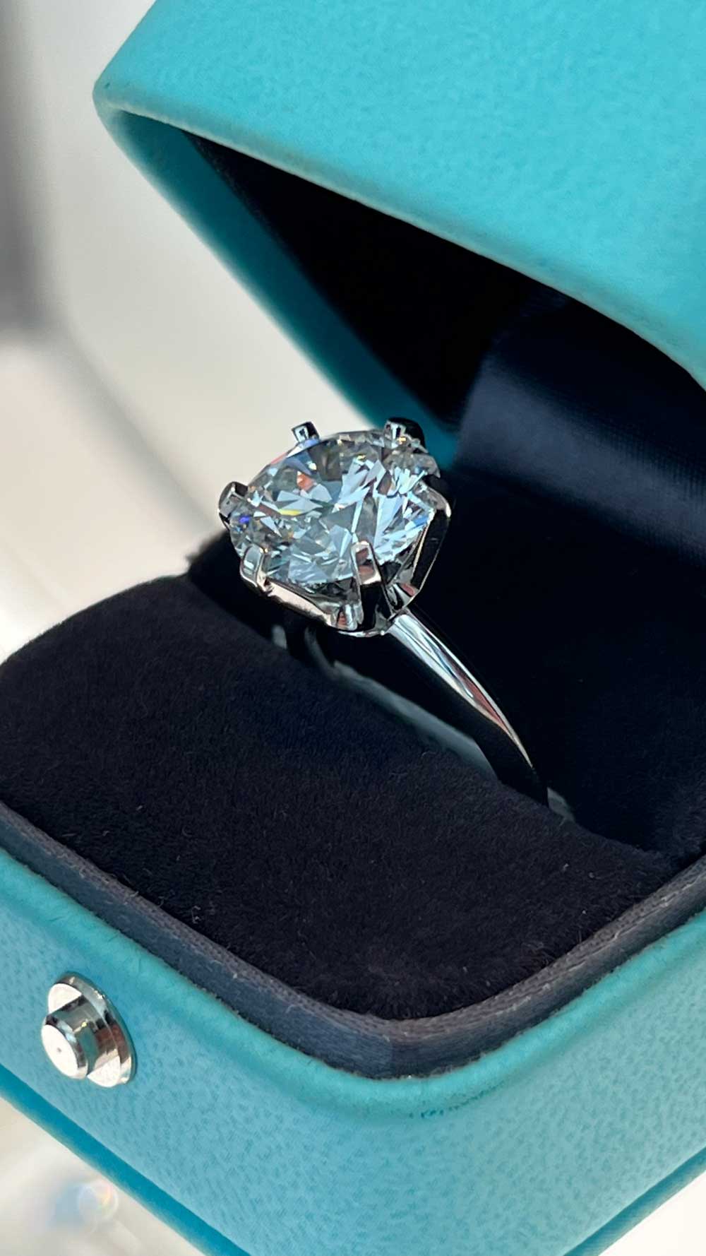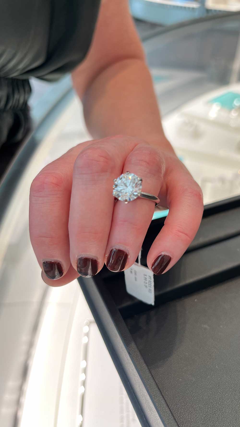 With the front door locked and millions of dollars worth of bling at her fingertips, and because after all, diamonds are a girl’s best friend, AC took one for the team when given the chance to try on the Tiffany outlet’s most expensive jewel – a 5.99 carat, ‘D’ internally flawless, US$1.375 million ring.
