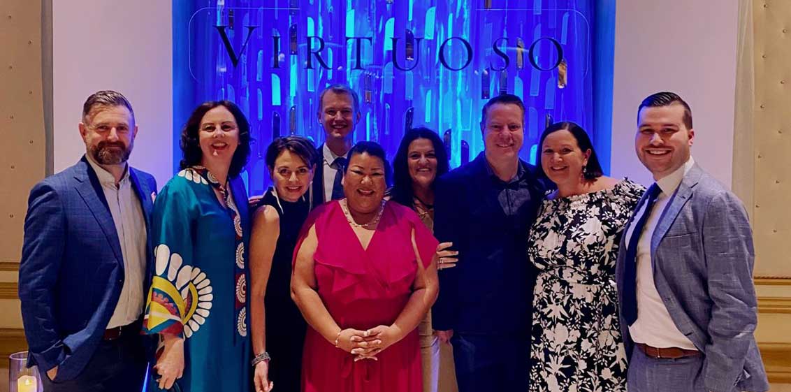 The Frontier Travel team, pictured at the Gala Dinner on Thursday night to conclude Virtuoso Travel Week 2022, included (from left); Craig Stepnell, The VIP Traveller; Ann-Catherine Jones, Frontier Travel; Deb Oliver, Island Travel Specialists; Roland Howlett, Director – Frontier Travel; Lisa McFadyen, Black Book Travel; Donna Phillip, Donna Phillips Travel; Kevin Garwood, The VIP Traveller; Sonia Jones, Sonia Jones Travel and Beau O’Neill, Frontier Travel.