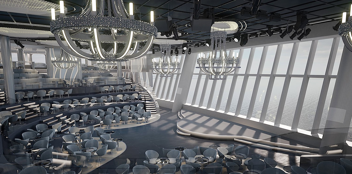 Located at the aft of the ship, the stunning Panorama Lounge will have music-themed experiences to enjoy over pre-show drinks, an interactive floor featuring unique designs that will transform the space and changing screens that reflect the theme of the night.