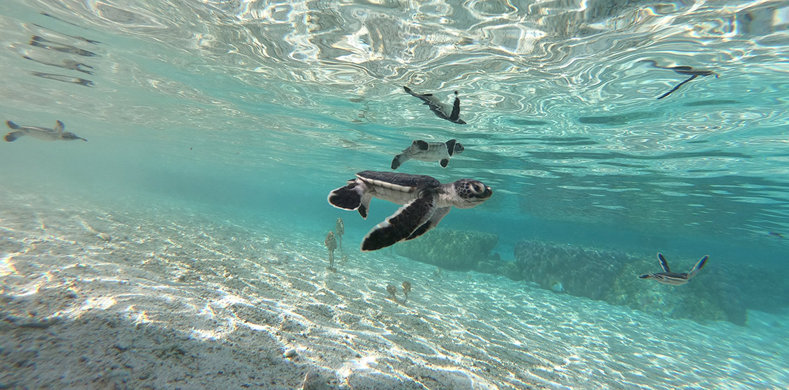But it’s the Ultimate Tour, to another island, that’s truly mind-boggling. One of The Brando’s eight full-time world-class scientists leads into dense undergrowth as red Boobys nesting in trees, observe with fascination. Other species, super-inquisitive, swoop as if kamikaze dive bombers. Intruder palms, sailed as coconuts, all the way from Asia, jostle with indigenous Pua Tea trees (their candyfloss-like interiors drop as softest ground cover). Decades-old coconut crabs appear with nightfall. Day-time, hermit crabs race to find bigger shells into which to plop.