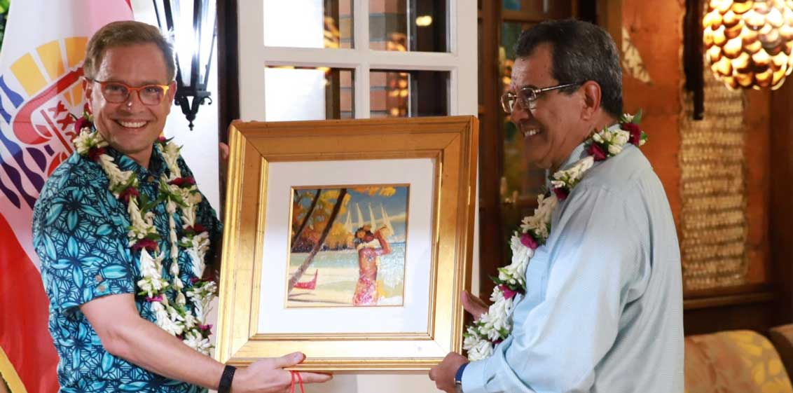 Windstar President Chris Prelog has just completed the most whirlwind week in a career at sea that started 25 years ago. One of many highlights of his company’s 35th birthday cruise, on Windstar Star Breeze, seven nights from Sunday 19 October, was announcing a partnership with the Moorea-based Coral Gardener conservation charity, kicking off with a US$35,000 donation. Another highlight was the presence aboard of the President of French Polynesia, The Hon Edouard Fritch, who hosted the entire complement of cruise guests to a reception at his official palace in Papeete on the last night of the one-off week.