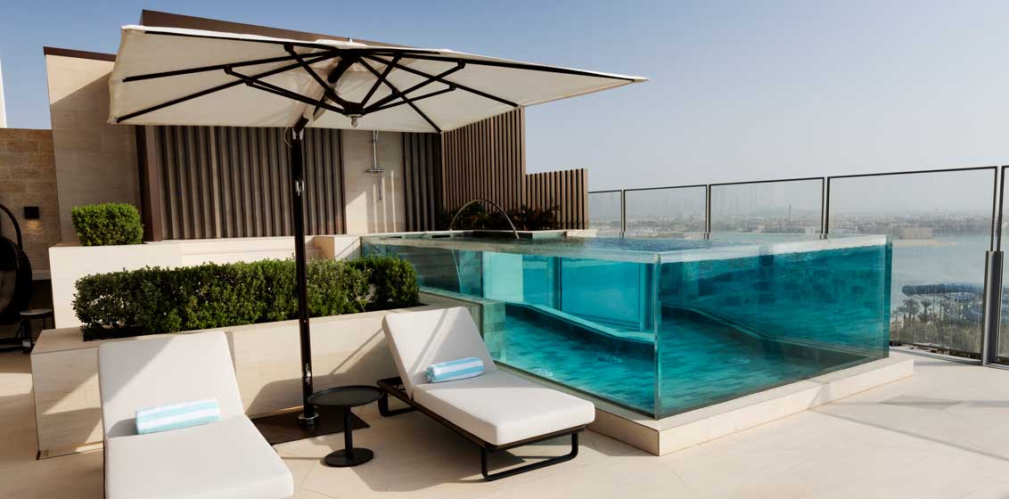 The resort surges 43 storeys high with unparalleled views over the Arabian Sea and Palm Island. All Rooms, Suites and Signature Penthouses deliver show-stopping ultra-luxury touches, including a bespoke selection of amenities from luxury brands, including Hermès, Frette and Graff.