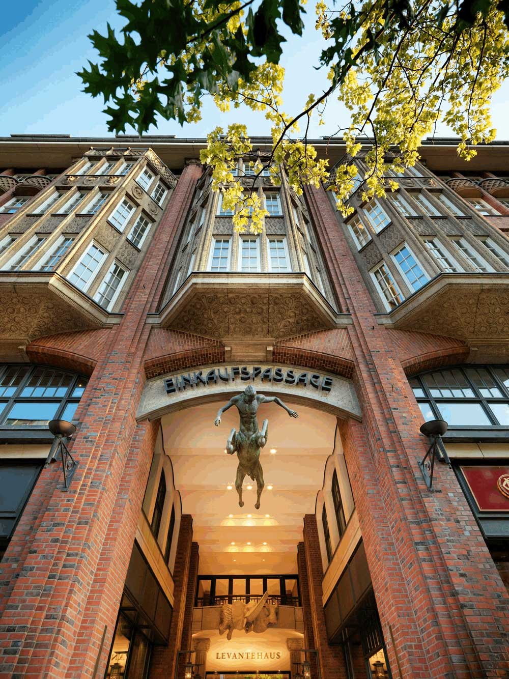 The sandstone pillars and a sculpture by Barry Baldwin, combined with the mixture of Art Nouveau and Art Deco, continue to create a uniquely elegant atmosphere. In 1997, the Levantehaus was converted into one of Hamburg’s most stylish shopping arcades, also