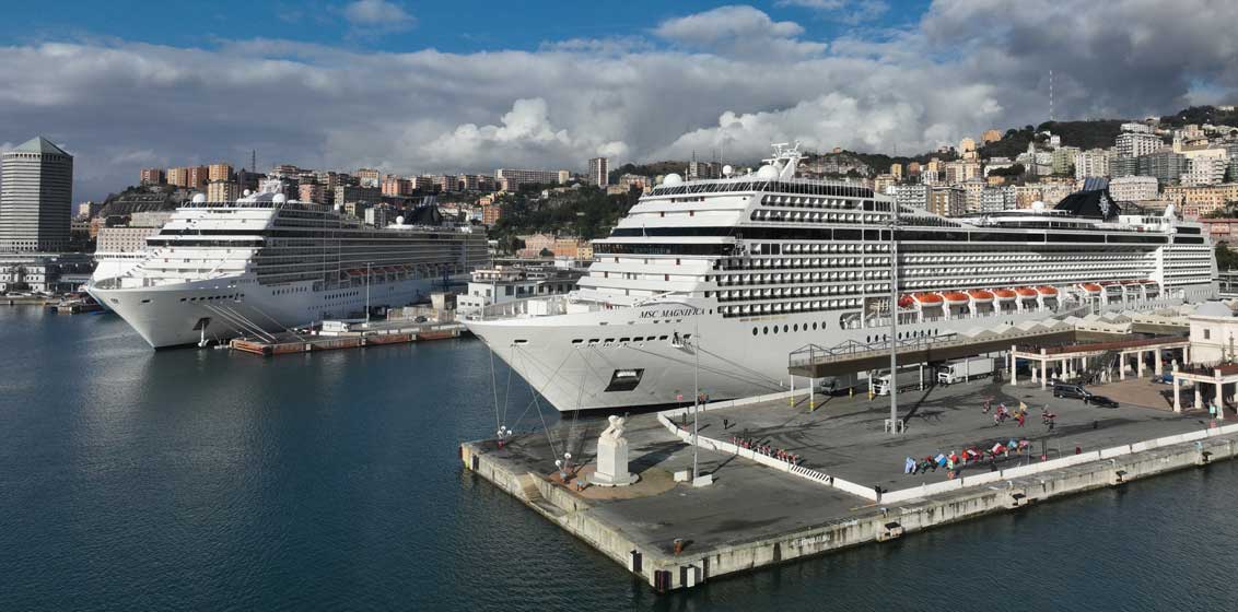 Last Thursday , MSC Cruises wished bon voyage to guests aboard MSC Poesia and MSC Magnifica as the two ships departed from Genoa, Italy for simultaneous world cruises – an industry first.