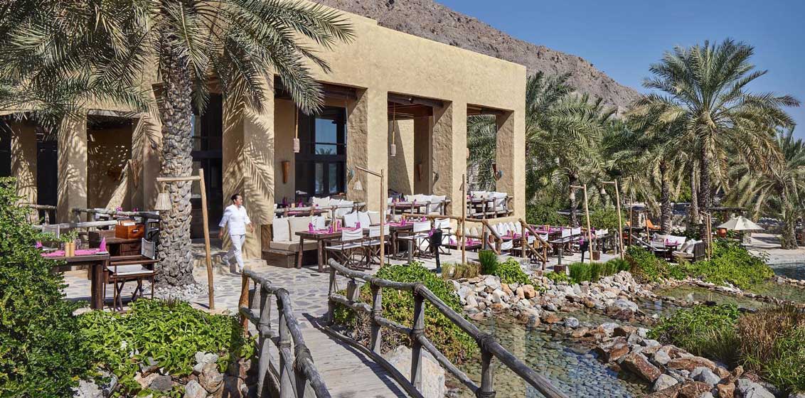 Onsite boss Andrew Spearman is one of those hoteliers who, like Flashman of novel fame, is everywhere at the right time. See him at the daily yoga class. As you walk past the main pool, he happens to be there, asking about your food plans. Perhaps lunch off a fresh tuna salad bowl, poke-style, eaten under the shady roof of a beach shack? Dine where you want, say a secluded mountain-high ridge, or at the hotel’s up-there The Edge, or down at base Summer House. For local fare, you might start with Dibba Bay oysters. For sustainability, eschew big-name wines for surprisingly enjoyable organic labels from Sea Change.