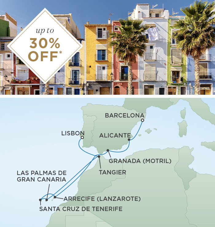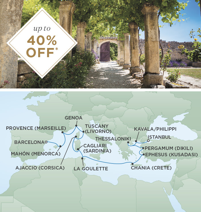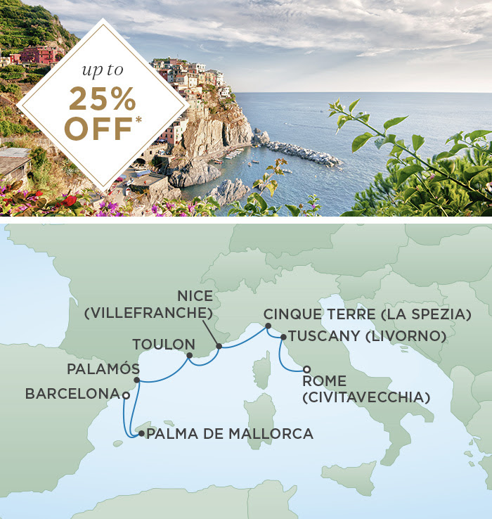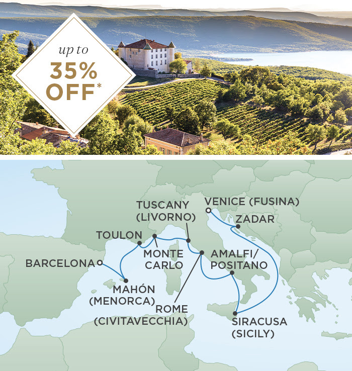 | BOOK TODAY AND ENJOY A FREE 2-CATEGORY SUITE UPGRADE AND A REDUCED 7.5% DEPOSIT** PLUS UP TO 40% SAVINGS ON SELECT SAILINGS* |