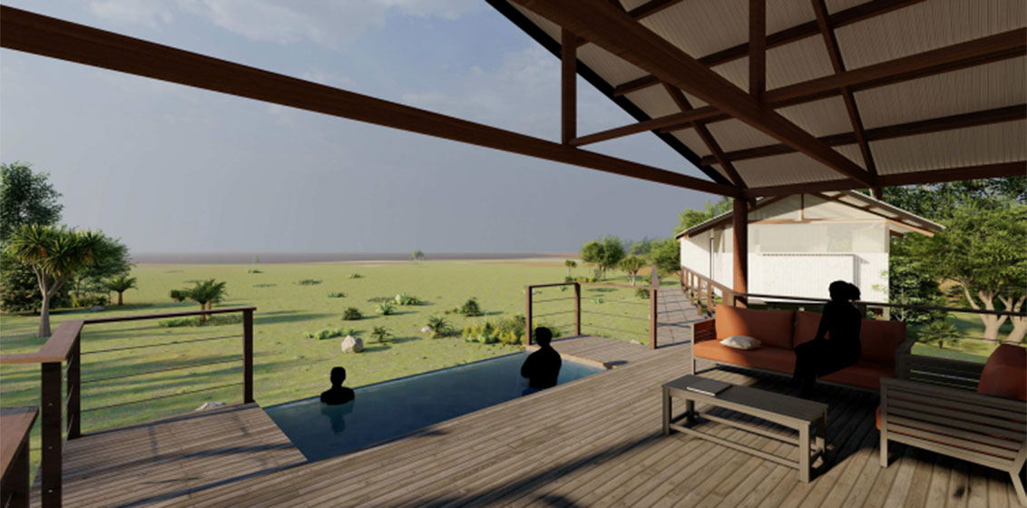 The Retreat will complement the existing accommodation at Bamurru Plains which includes ten stylish eco-cabins and one larger Kingfisher Suite overlooking the flood plains frequented by myriad bird and animal life.