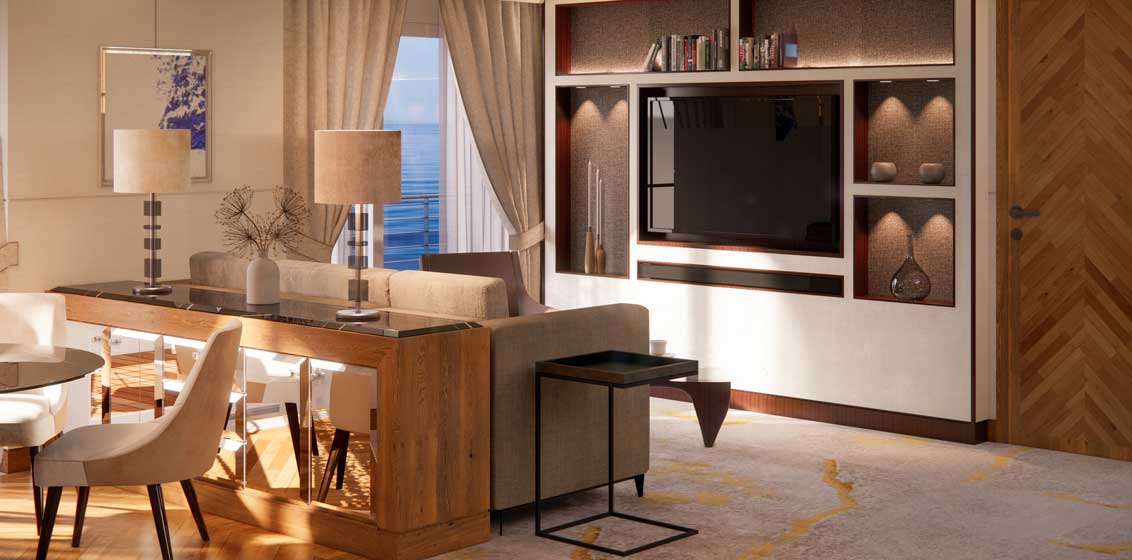 The reimagined vessels will feature larger, updated suites that include artisanal finishes, cutting-edge-onboard wellness, and world-class dining and entertainment.